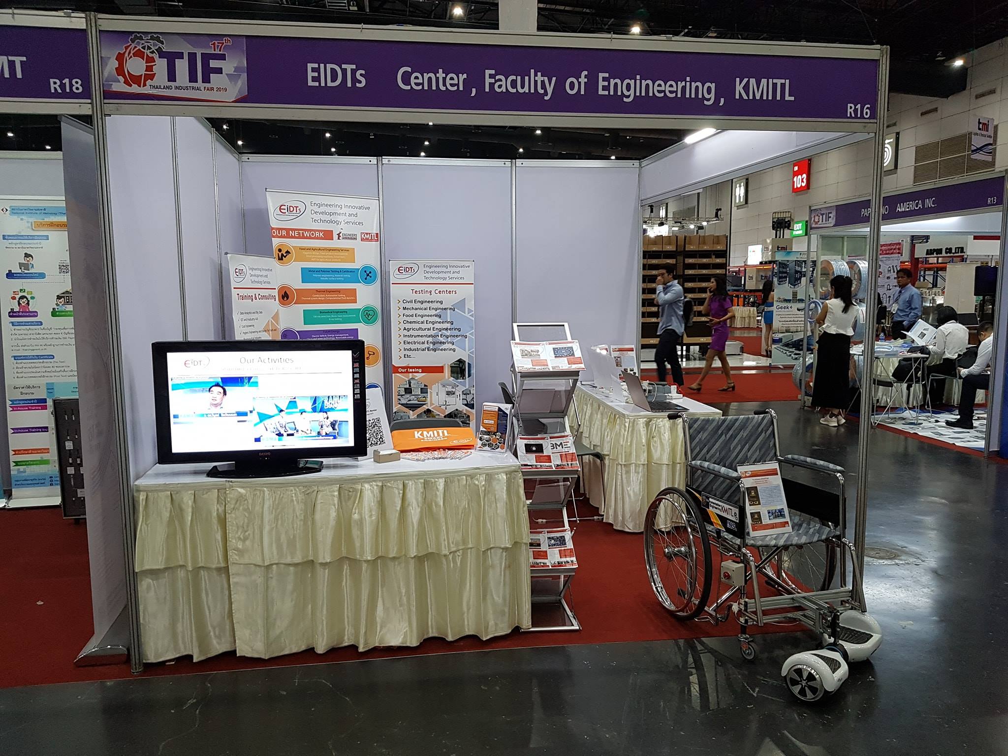 ศูนย์พัฒนานวัตกรรมเเละบริการทาวิศวกรรม (ศูนย์ EIDTs) เเละนวัตกรรมจากคณะวิศวกรรมศาสตร์ สถาบันเทคโนโลยีพระจอมเกล้าเจ้าคุณทหารลาดกระบัง ได้ไปออกบูธเพื่อติดต่องานด้านวิศวกรรมและนำนวัตกรรมของคณาจารย์คณะวิศวกรรมไปแสดงภายในงาน Thailand Industrial fair 2019 ที่บูธ R 16 Hall 104 @ Bitec Bangna ระหว่างวันที่ 13-16 กุมภาพันธ์ 2562