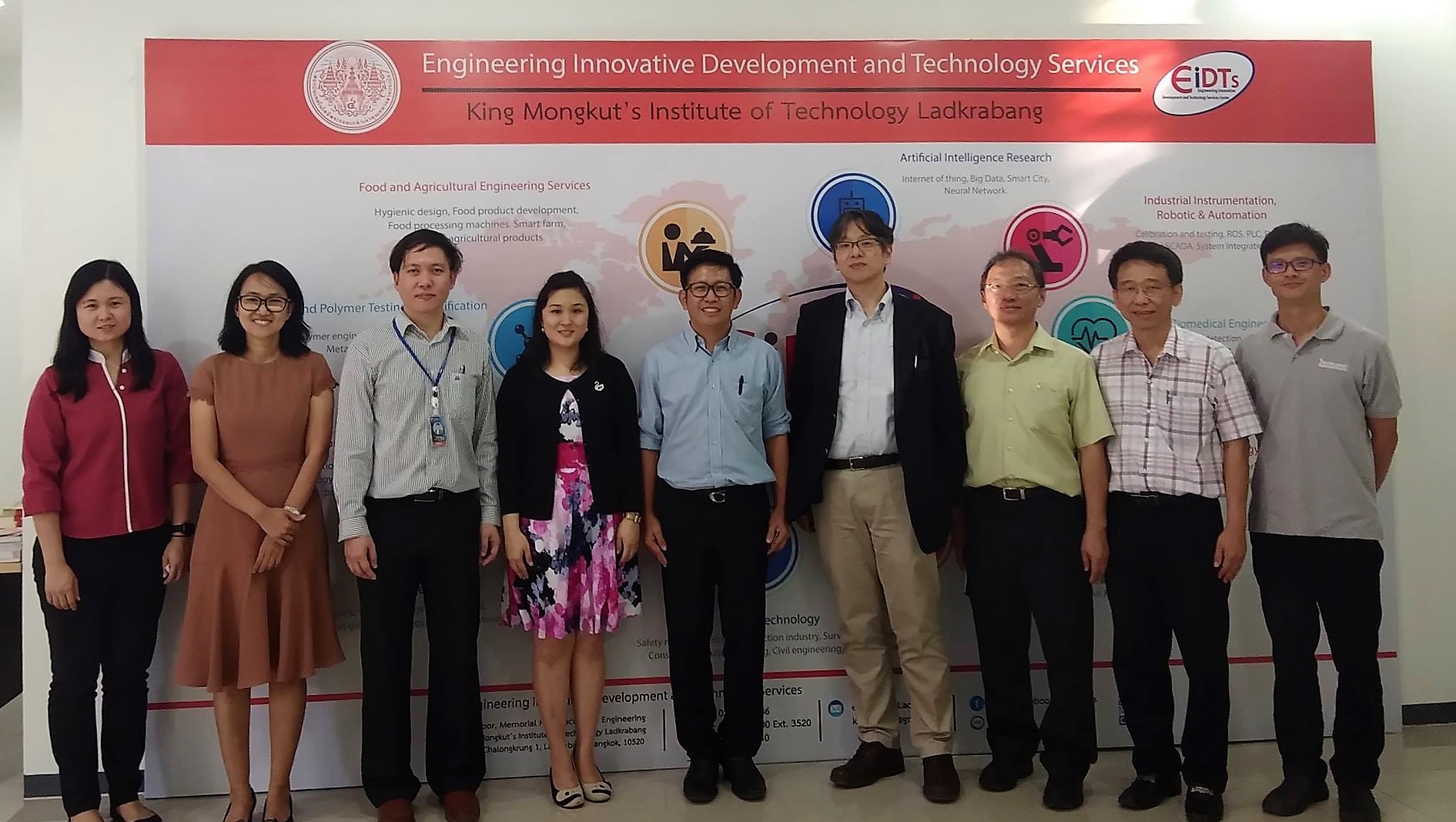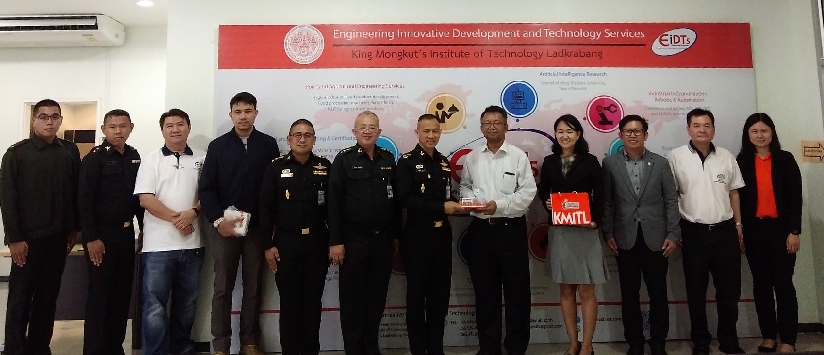วันที่ 24 มกราคม 2562 รศ.ดร.นวภัทรา หนูนาค หัวหน้าศูนย์พัฒนานวัตกรรมและบริการทางวิศวกรรม (EIDTs) และ รศ.ดร.ทวีพล ซื่อสัตย์ ที่ปรึกษาศูนย์ EIDTs ได้ให้การต้อนรับ รศ.ดร.วีระเชษฐ์ ขันเงิน อาจารย์จากภาควิชาวิศวกรรมไฟฟ้า และคณะศูนย์อำนวยการสร้างอาวุธ เข้าเยี่ยมชมศูนย์ EIDTs และ FABLAB รวมถึงหารือความร่วมมือในการทำงานวิจัย ณ ศูนย์ EIDTs คณะวิศวกรรมศาสตร์ สจล.