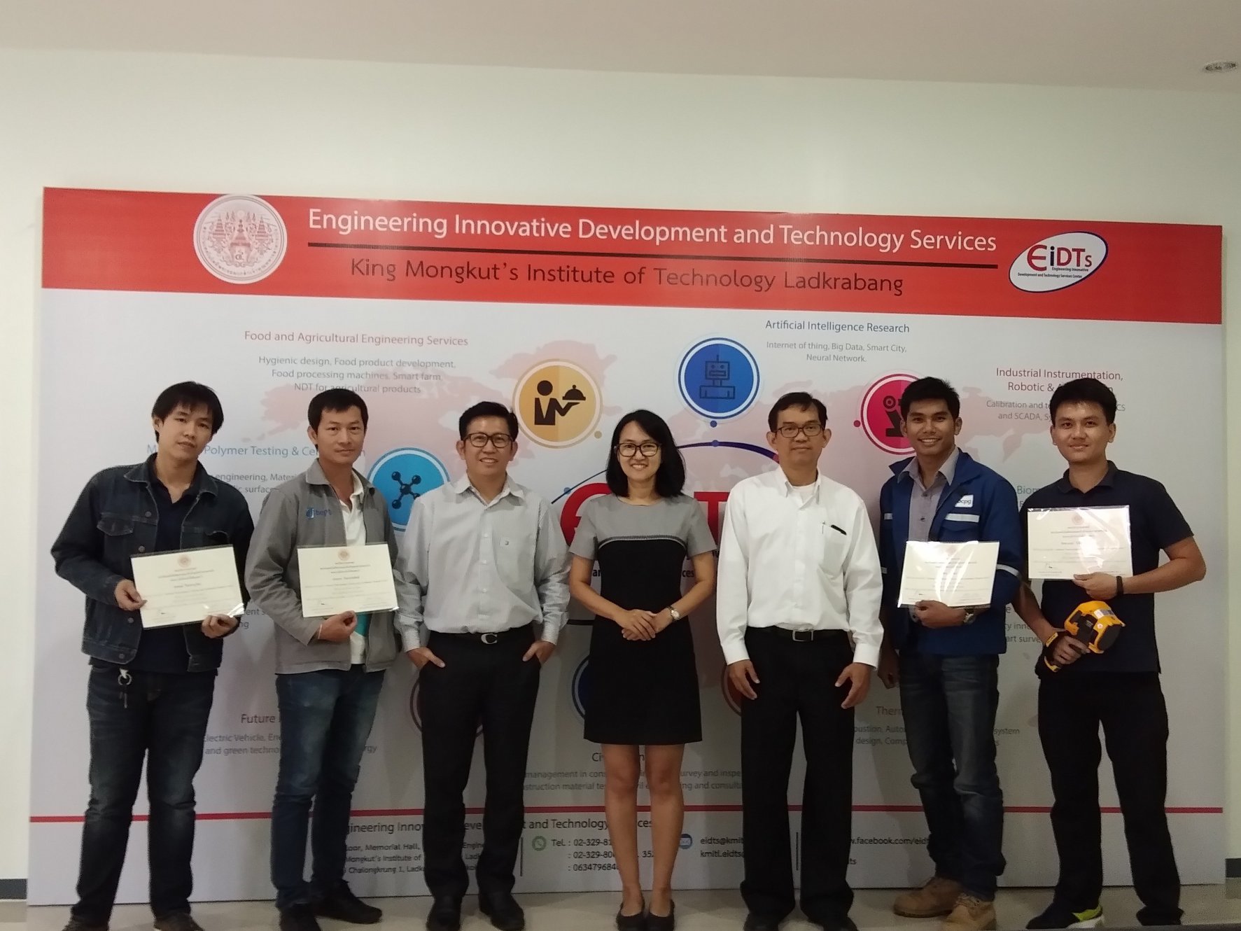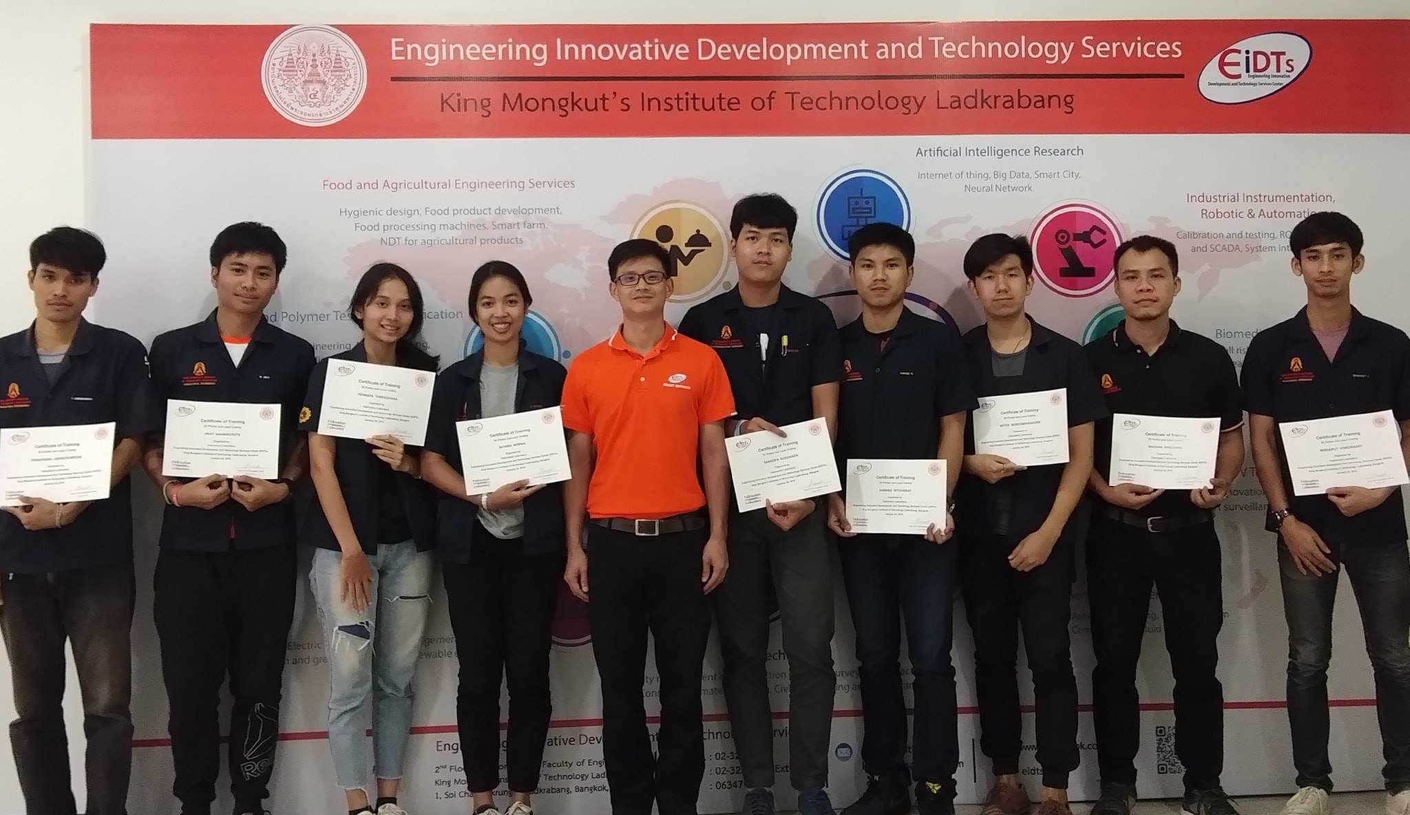 วันที่ 22 – 25 มกราคม 2562 ศูนย์พัฒนานวัตกรรมและบริการทางวิศวกรรม (EIDTs) จัดงานอบรม เรื่อง “Infrared Thermography Training and Certification Program Level 1 รุ่น 1” นำทีมโดยวิทยากรผู้เชี่ยวชาญด้านกล้องถ่ายภาพความร้อน ได้แก่ ดร.ยุทธพงศ์ ทัพผดุง (ผู้จัดการหน่วยธุรกิจพลังงานแสงอาทิตย์ บริษัท พีอีเอ เอ็นคอม อินเตอร์เนชั่นแนล จำกัด), ดร.ธีระวัฒน์ หนูนาค (ผู้จัดการฝ่ายเครื่องมือวัดคุณภาพไฟฟ้าและภาพความร้อน บริษัท เมเชอร์โทรนิกซ์ จำกัด) รศ. ดร.นวภัทรา หนูนาค (หัวหน้าศูนย์พัฒนานวัตกรรมและบริการทางวิศวกรรม) และ รศ. ดร.ทวีพล ซื่อสัตย์ (ที่ปรึกษาศูนย์พัฒนานวัตกรรมและบริการทางวิศวกรรม) ณ ศูนย์ EIDTs คณะวิศวกรรมศาสตร์ สจล. โดยผู้ผ่านการอบรมจะได้รับหน่วยความรู้การพัฒนาวิชาชีพวิศวกรรมต่อเนื่อง (PDU) จากสภาวิศวกร