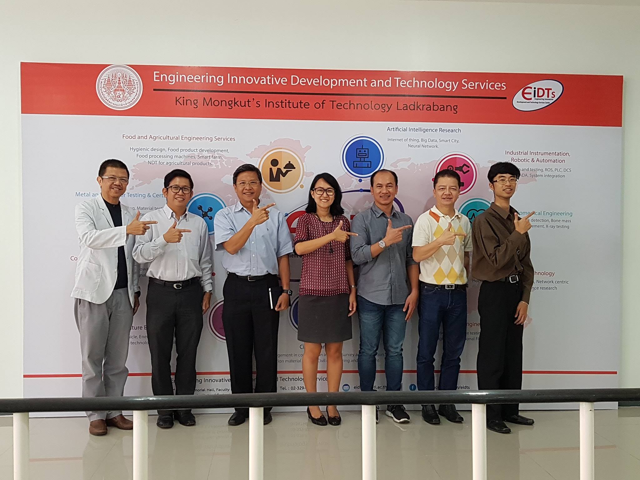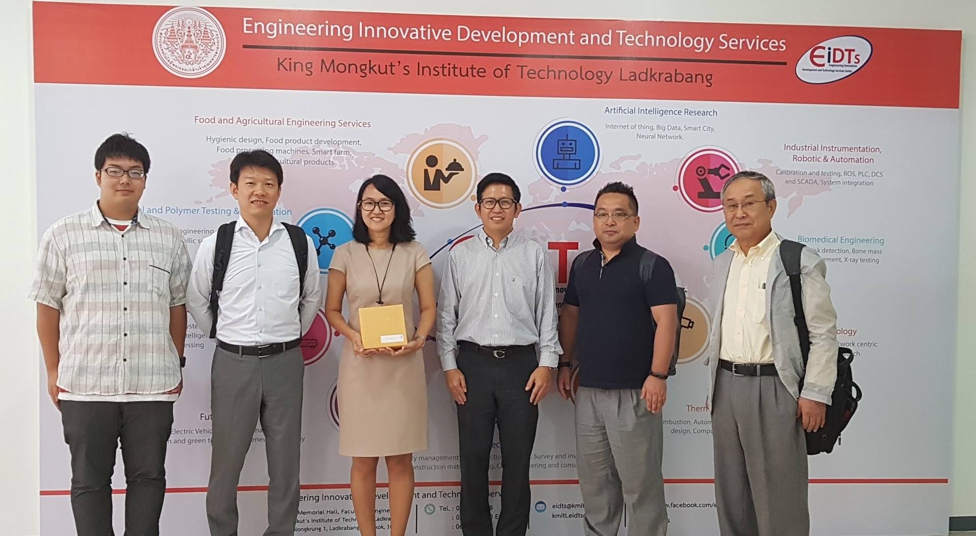 ในวันที่ 28 สิงหาคม 2561 รศ. ดร. นวภัทรา หนูนาค หัวหน้าศูนย์พัฒนานวัตกรรมและบริการทางวิศวกรรม (EIDTS) รศ. ดร.ทวีพล ซื่อสัตย์ เเละคุณสมนึก ศิริจรัสวงศ์ ที่ปรึกษาศูนย์ EIDTS ได้พูดคุยกับตัวเเทนสำนักงานพัฒนาวิทยาศาสตร์และเทคโนโลยีแห่งชาติ, ศูนย์เทคโนโลยีอิเล็กทรอนิกส์และคอมพิวเตอร์แห่งชาติ (NECTEC) และกรมส่งเสริมอุตสาหกรรม เพื่อสร้างกรอบความร่วมมือการสร้างเครือข่ายงานวิจัยด้านยานยนต์สมัยใหม่แบบครบวงจร ภายใต้โครงการกิจกรรมถ่ายทอดเทคโนโลยียานยนต์ไฟฟ้าสำหรับผู้ประกอบการ SMEs ณ ศูนย์ EIDTS คณะวิศวกรรมศาสตร์ สจล.