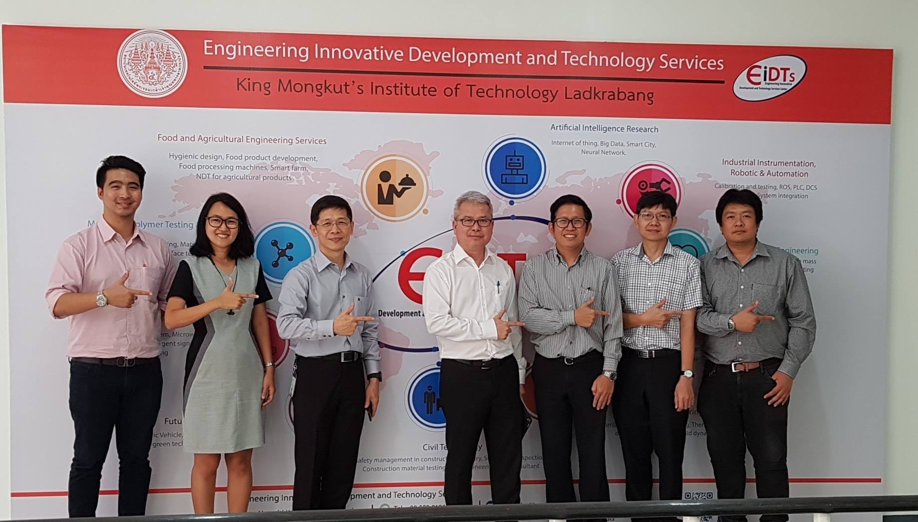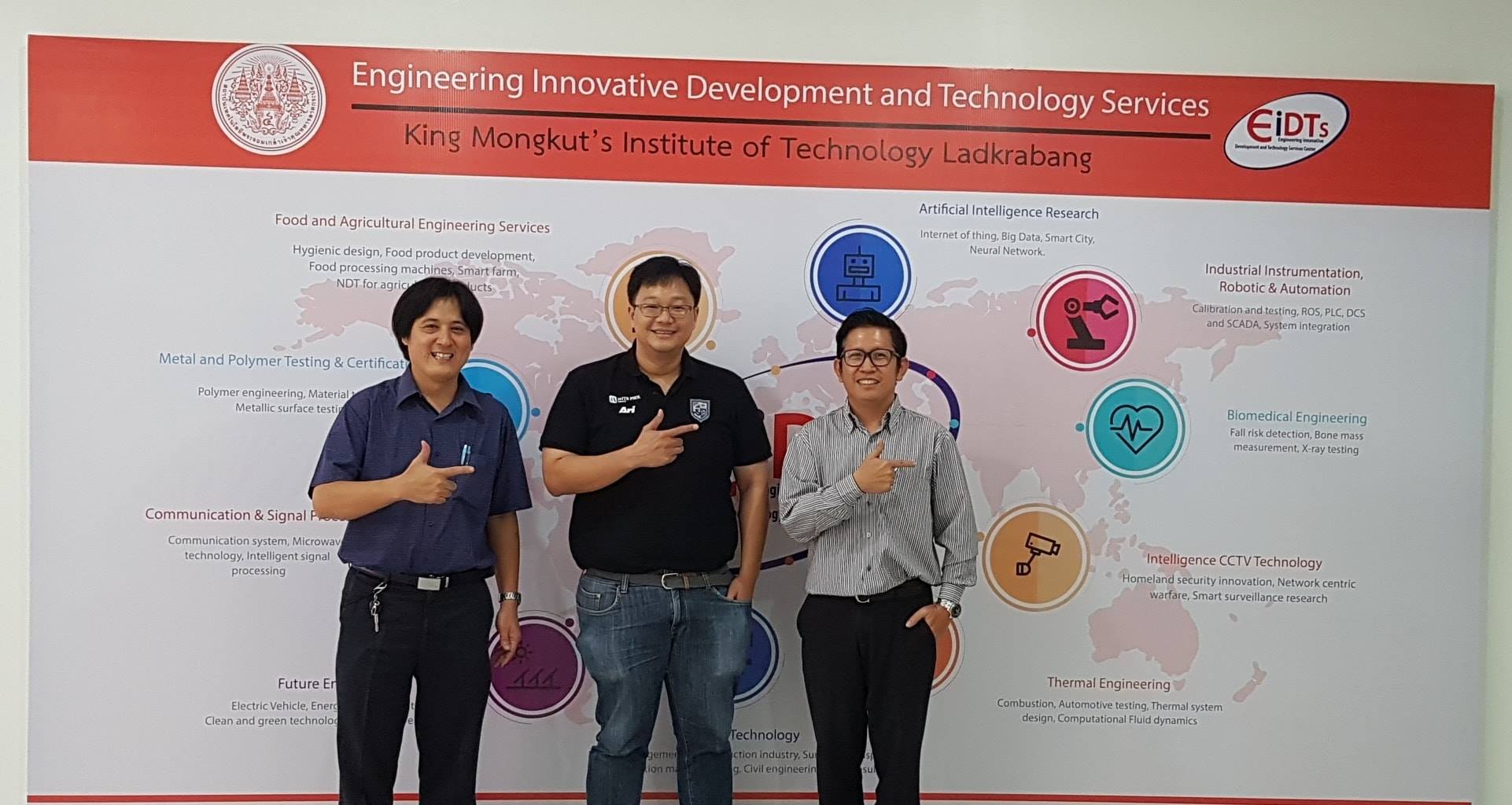 วันที่ 6 กันยายน 2561 รศ. ดร. นวภัทรา หนูนาค หัวหน้าศูนย์พัฒนานวัตกรรมและบริการทางวิศวกรรม (EIDTS) รศ. ดร.ทวีพล ซื่อสัตย์ ที่ปรึกษาศูนย์ EIDTS และ ดร.วสุ อุดมเพทายกุล อาจารย์ประจำภาควิชาวิศวกรรมเกษตร พูดคุยการจัดทำวิจัยร่วมกับบริษัท น้ำตาลมิตรผล จำกัด ณ ศูนย์ EIDTS คณะวิศวกรรมศาสตร์ สจล.